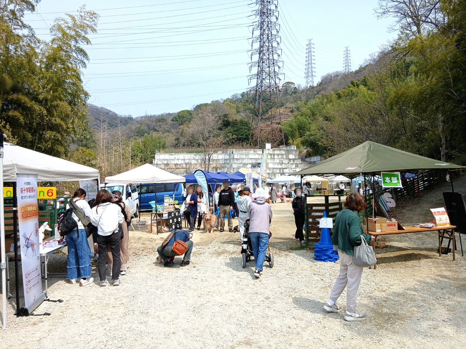 稲荷山ペットパークの坂道を少し歩くと汗ばむ春らしい気温の中始まったわんニャスフェスティバルですが、開催すぐはあまりお客様がお見えにならず少し不安がよぎりました。しかし、正午が近づくにつれてどんどんワンちゃんを連れたお客様が会場に訪れるようになり、お昼過ぎからは併設のドッグランで運動した後のワンちゃん・飼い主様達が休憩がてら商品を見学してくださいました。弊社のリッチキンの試食も好評で、「今日の試食の中で一番良く食べてるわ。」というありがたいお言葉もいただけました。また、今回はリッチキンの展示をいつもと変えてみたところ、お写真を撮ったり、「可愛い展示やね」と声をかけて下さるお客様がおられて、頑張ったかいがありましたし、お客様を楽しませることが出来て本当に良かったです。
